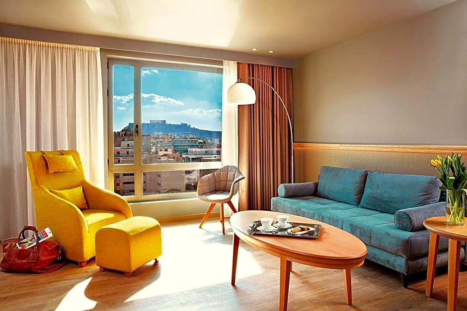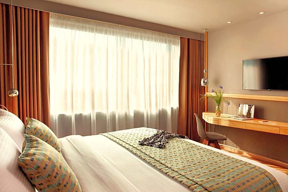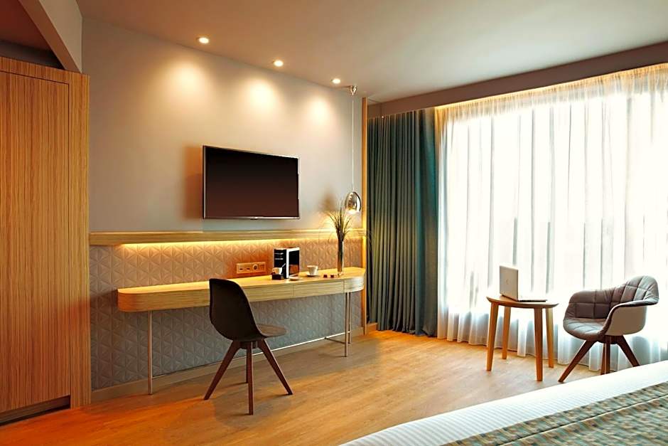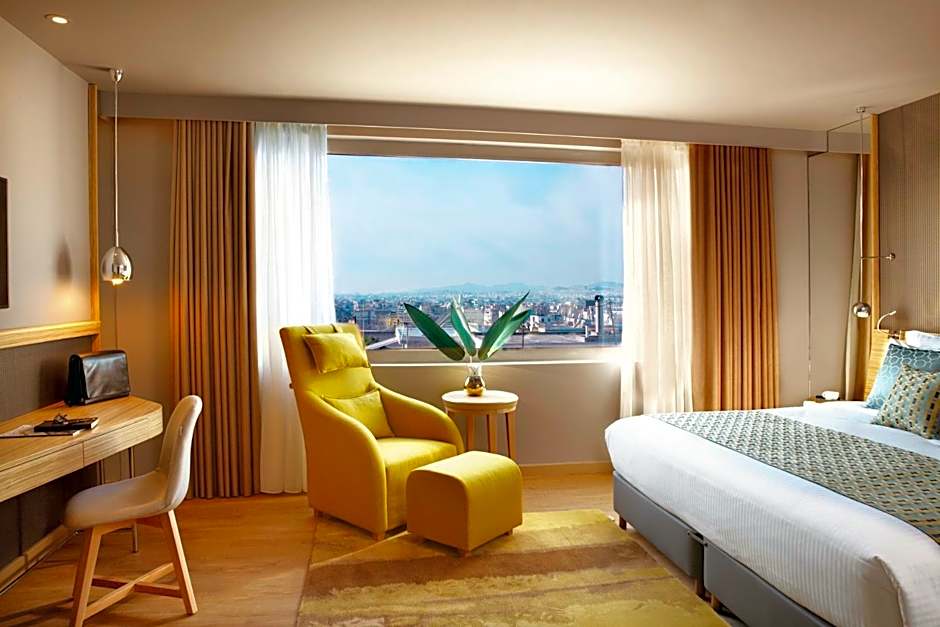 The non smoking accessible guest room with one king bed offers a city view. Accessible features include a walk in shower and bathroom rails. Standard amenties include a spacious work area, flat screen HDTV, minibar, safety box, easy chair, luggage bench-rack, hospitality tray and ironing board. For your convenience we offer WIFI throughout the hotel.